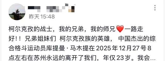 12月29号晚,多位疼爱格斗的网友透露追到音问,来改过疆柯尔克孜族的英豪“小鹰”库特曼可怜逝世,年仅23岁。正好欢跃的年齿,简直让东说念主无法闲散,从此格斗赛场上再也莫得他的伟貌,以及为国争气的时刻。